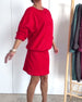 Unifarbenes Kleid mit Schirmärmeln und Falten