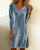 Kleid Mode Denim Patchwork V-Ausschnitt