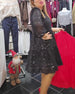 SPEZIFIKATIONEN Stil: Zwanglos Material: Baumwollmischungen,Pailletten Kleid Typ: Gerades Kleid Kleid Länge: Oberhalb des Knies Muster Typ: Pailletten,Einfarbig Ärmel Typ: Regulärer Ärmel Ärmellänge: 3/4 Ärmel Einzelheiten: Patchwork,Durchsichtige Passform Typ: Normal Jahreszeit: Herbst,Winter Anlass: Täglich Paket enthält: 1 x Kleid GRÖSSENTA...