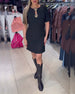SPEZIFIKATIONEN Stil: Zwanglos Material: Baumwollmischungen Kleid Typ: Gerades Kleid Kleid Länge: Oberhalb des Knies Ausschnitt: Revers Muster Typ: Einfarbig Ärmel Typ: Regulärer Ärmel Ärmellänge: 3/4 Ärmel Einzelheiten: Tasche,Reißverschlüsse Passform Typ: Normal Jahreszeit: Herbst,Winter Anlass: Täglich Paket enthält: 1 x Kleid GRÖSSENTABELL...