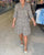 Kleid Kurzärmlig V-Ausschnitt Leopardenmuster