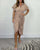Khakifarbenes, bedrucktes Kleid mit langen Ärmeln