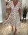 Lässiges bedrucktes kleid mit v-ausschnitt und halblangen ärmeln
