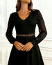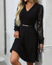 Kleid Elegant Spitze Langarm V-Ausschnitt