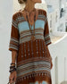 Kleid V-Ausschnitt bedruckt Bohème-Stil