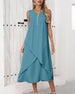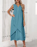 Kleid Gepresst Gekräuselt Unregelmäßiger Saum Ärmellos