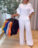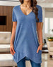 T-Shirt Asymmetrischer Saum V-Ausschnitt Kurzarm
