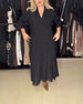Elegantes langes Kleid mit Dreiviertelärmeln und V-Ausschnitt