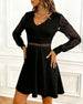 SPEZIFIKATIONEN Stil: Zwanglos Material: Baumwollmischungen,Spitze Kleid Typ: A-Linie Kleid Länge: Oberhalb des Knies Ausschnitt: V-Ausschnitt Muster Typ: Einfarbig Ärmel Typ: Regulärer Ärmel Ärmellänge: Lange Ärmel Einzelheiten: Durchsichtige Passform Typ: Normal Jahreszeit: Herbst,Winter Anlass: Täglich Paket enthält: 1 x Kleid GRÖSSENTABELL...