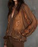 Bluse V-Ausschnitt Bohème-Stil floral