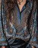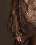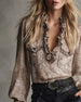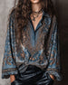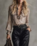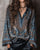 Bluse Retro Druck V-Ausschnitt Revers Raffiniert