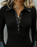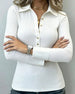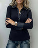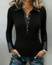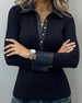 Top Kontrastfarbe Klappe V-Ausschnitt Langärmlig