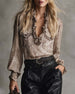 Bluse mit Rüschen V-Ausschnitt Leopardenprint