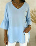 Bluse Seitenknopf Schmetterlingsärmel Leinen