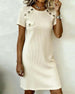 SPEZIFIKATIONEN Stil: Schick Material: Baumwollmischungen Kleid Typ: Gerades Kleid Kleid Länge: Oberhalb des Knies Ausschnitt: Rundhalsausschnitt Muster Typ: Einfarbig Ärmel Typ: Regulärer Ärmel Ärmellänge: Kurze Ärmel Einzelheiten: Knöpfe Passform Typ: Normal Jahreszeit: Frühling,Sommer Anlass: Täglich Paket enthält: 1 x Kleid GRÖSSENTABELLE ...