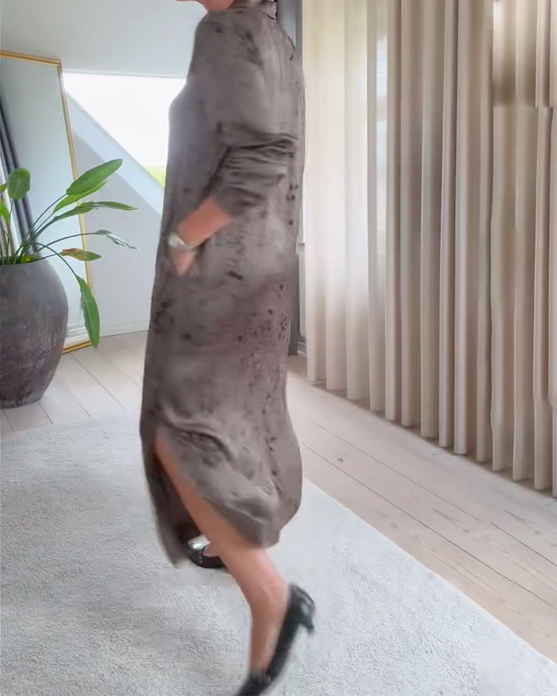 Modisches bedrucktes Kleid mit Rundhalsausschnitt und langen Ärmeln