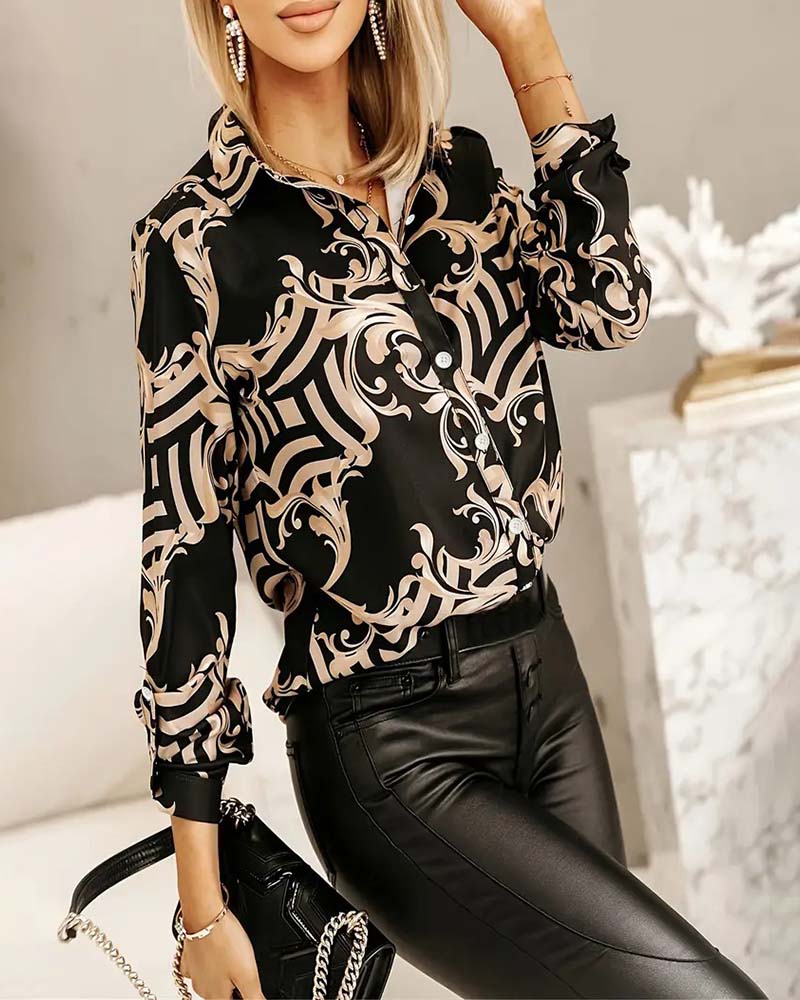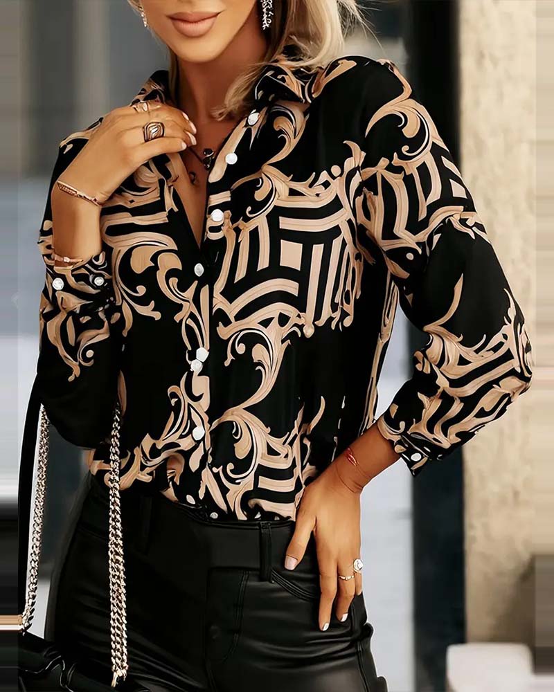 Hemd Modedruck Revers Langarm