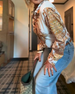 Oberteil Mit Steinen, Diaphanem Chiffon Und Ausschnitten - Patchwork