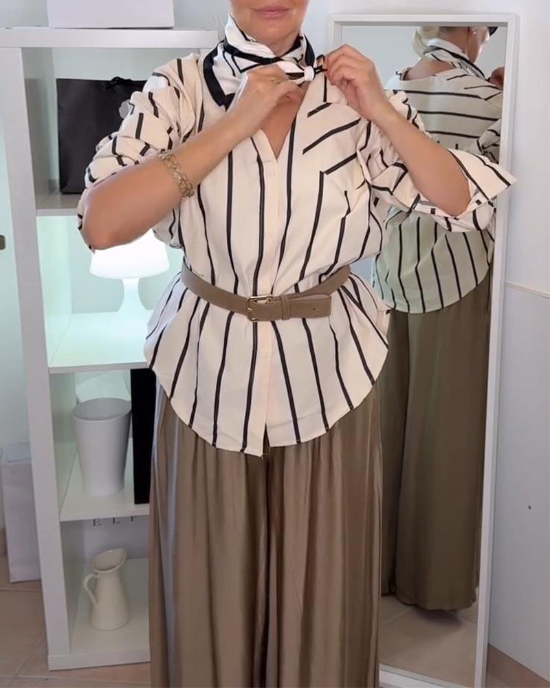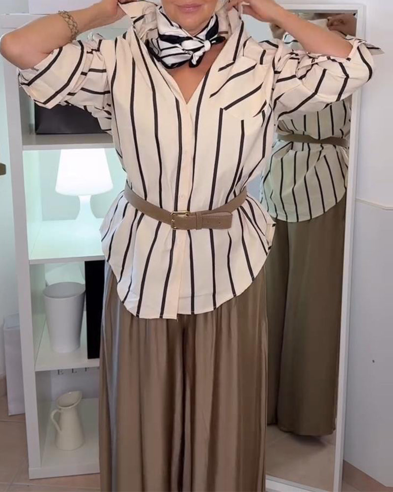 Kleid lässig Revers gestreift Kontrastfarbe Nähte