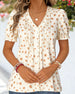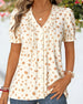 Bluse Gepunktet Rüsche V-Ausschnitt Kurzarm