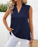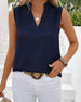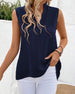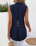 Tanktop Mandarin Kragen Rückseite Schlitz Knopf Ärmellos