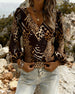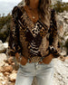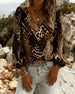 Bluse Patchwork Leopardenmuster V-Ausschnitt Puffärmel