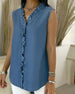 Top Rüsche V-Ausschnitt Ärmellos Denim