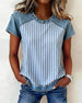 T-Shirt Denim Patchwork Gestreift Kurzarm