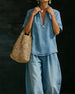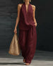 Set Leinen Halfter Ausschnitt Ärmellos Weites Bein Hose