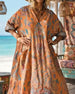 Kleid Retro Blumendruck V-Ausschnitt Maxi