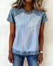 SPEZIFIKATIONEN Oberteil Typ: T-shirt Stil: Zwanglos Material: Baumwollmischungen,Denim Anlass: Täglich Ausschnitt: Rundhalsausschnitt Muster Typ: Gestreift Ärmel Typ: Regulärer Ärmel Ärmellänge: Kurze Ärmel Passform Typ: Normal Jahreszeit: Frühling,Sommer Paket enthält: 1 x T-shirt GRÖSSENTABELLE (cm) Größe Brsutmfang Länge S 92 65 M 96...