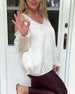 Bluse mit V-Ausschnitt Perlenknöpfe Spitze