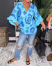 SPEZIFIKATIONEN Oberteil Typ: Blusen Stil: Zwanglos Material: Baumwollmischungen Anlass: Täglich Ausschnitt: V-Ausschnitt Muster Typ: Druck Ärmel Typ: Flare Ärmel Ärmellänge: 3/4 Ärmel Passform Typ: Normal Jahreszeit: Frühling,Sommer Paket enthält: 1 x Bluse GRÖSSENTABELLE (cm) Größe Brsutmfang Länge S 104 65 M 108 66.5 L 112 68 ...