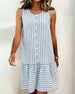 SPEZIFIKATIONEN Stil: Zwanglos Material: Baumwollmischungen Kleid Typ: A-Linie Kleid Länge: Knielang Ausschnitt: Rundhalsausschnitt Muster Typ: Gestreift Ärmellänge: Ärmellos Passform Typ: Locker Jahreszeit: Frühling,Sommer Anlass: Täglich Paket enthält: 1 x Kleid GRÖSSENTABELLE (cm) Größe Brsutmfang Länge S 97 100 M 101 101.5 L 105 10...