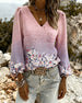 SPEZIFIKATIONEN Oberteil Typ: Oberteile Stil: Elegant Material: Baumwollmischungen Anlass: Täglich Ausschnitt: V-Ausschnitt Muster Typ: Farbverlauf,Druck Ärmel Typ: Regulärer Ärmel Ärmellänge: Lange Ärmel Passform Typ: Normal Jahreszeit: Frühling,Herbst Paket enthält: 1 x Oberteil GRÖSSENTABELLE (cm) Größe Brsutmfang Länge S 92 65 M 96 6...
