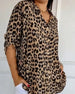 Bluse mit Rüschen V-Ausschnitt Leopardenprint