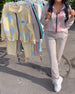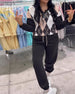 Zweiteiler kariert Oberteil mit Reißverschluss und Hose