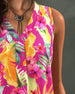 Kleid V-Ausschnitt Abstrakt Blumig Ärmellos