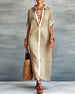 SPEZIFIKATIONEN Stil: Schick Material: Baumwollmischungen Kleid Typ: Gerades Kleid Kleid Länge: Midi Ausschnitt: Revers Muster Typ: Einfarbig Ärmel Typ: Regulärer Ärmel Ärmellänge: Halbe Ärmel Einzelheiten: Knöpfe Passform Typ: Normal Jahreszeit: Frühling,Sommer Anlass: Täglich Paket enthält: 1 x Kleid GRÖSSENTABELLE (cm) Größe Brsutmfang Lä...