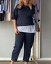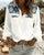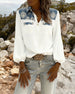 Top Kontrastfarbe Klappe V-Ausschnitt Langärmlig
