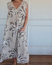 SPEZIFIKATIONEN Stil: Zwanglos Material: Baumwollmischungen Kleid Typ: Gerades Kleid Kleid Länge: Maxi Ausschnitt: V-Ausschnitt Muster Typ: Geometrischer Druck Ärmel Typ: Regulärer Ärmel Ärmellänge: Kurze Ärmel Passform Typ: Normal Jahreszeit: Frühling,Sommer Anlass: Täglich Paket enthält: 1 x Kleid GRÖSSENTABELLE (cm) Größe Brsutmfang Länge...