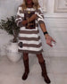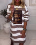 Modisches bedrucktes Kleid mit Rundhalsausschnitt und langen Ärmeln