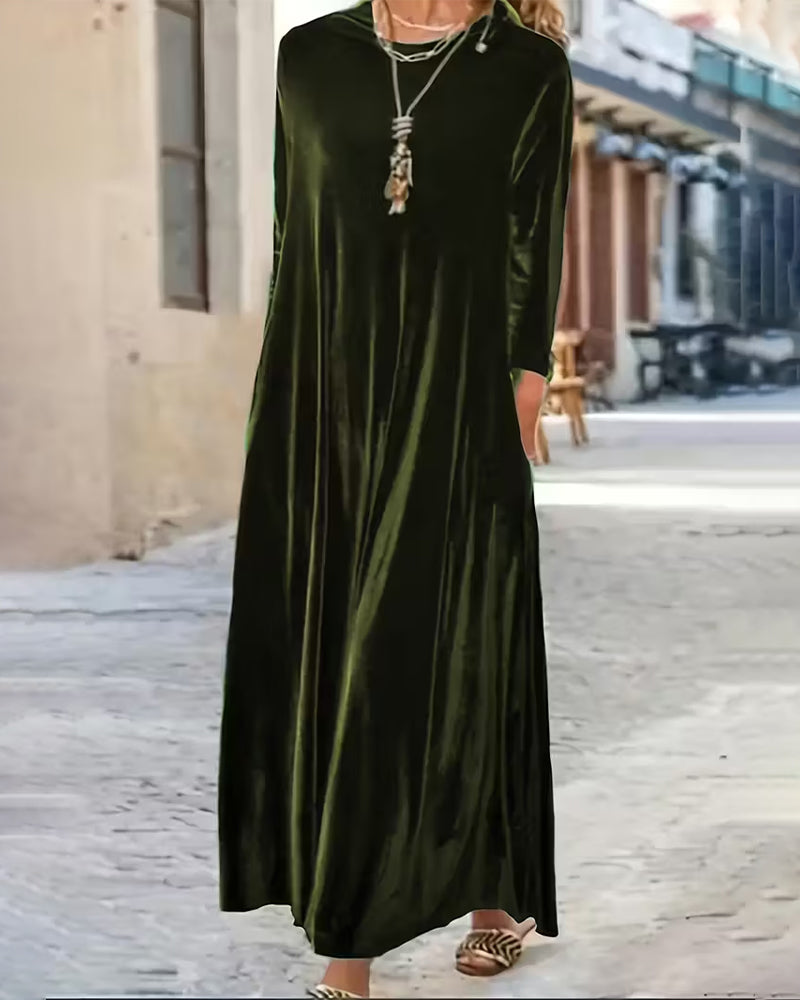 NEU Icon1 Lockeres langärmeliges Kleid in Uni-Farbe