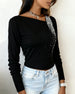 NEU Icon1 Unifarbenes langärmeliges Top mit Rhinestones