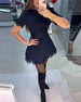 Kleid Puffärmel Tüll Eingesetzt V-Ausschnitt Lockere Passform