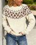 Pullover Jacquard V-Ausschnitt Durchbrochen Langärmelig