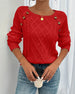 Pullover Jacquard V-Ausschnitt Durchbrochen Langärmelig