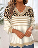 Icon1 Pullover V-Ausschnitt Leopardenprint Kontrast