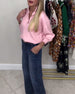 Pullover Jacquard V-Ausschnitt Durchbrochen Langärmelig
