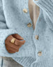 Einfarbige Strickjacke mit Stehkragen und Hornknöpfen